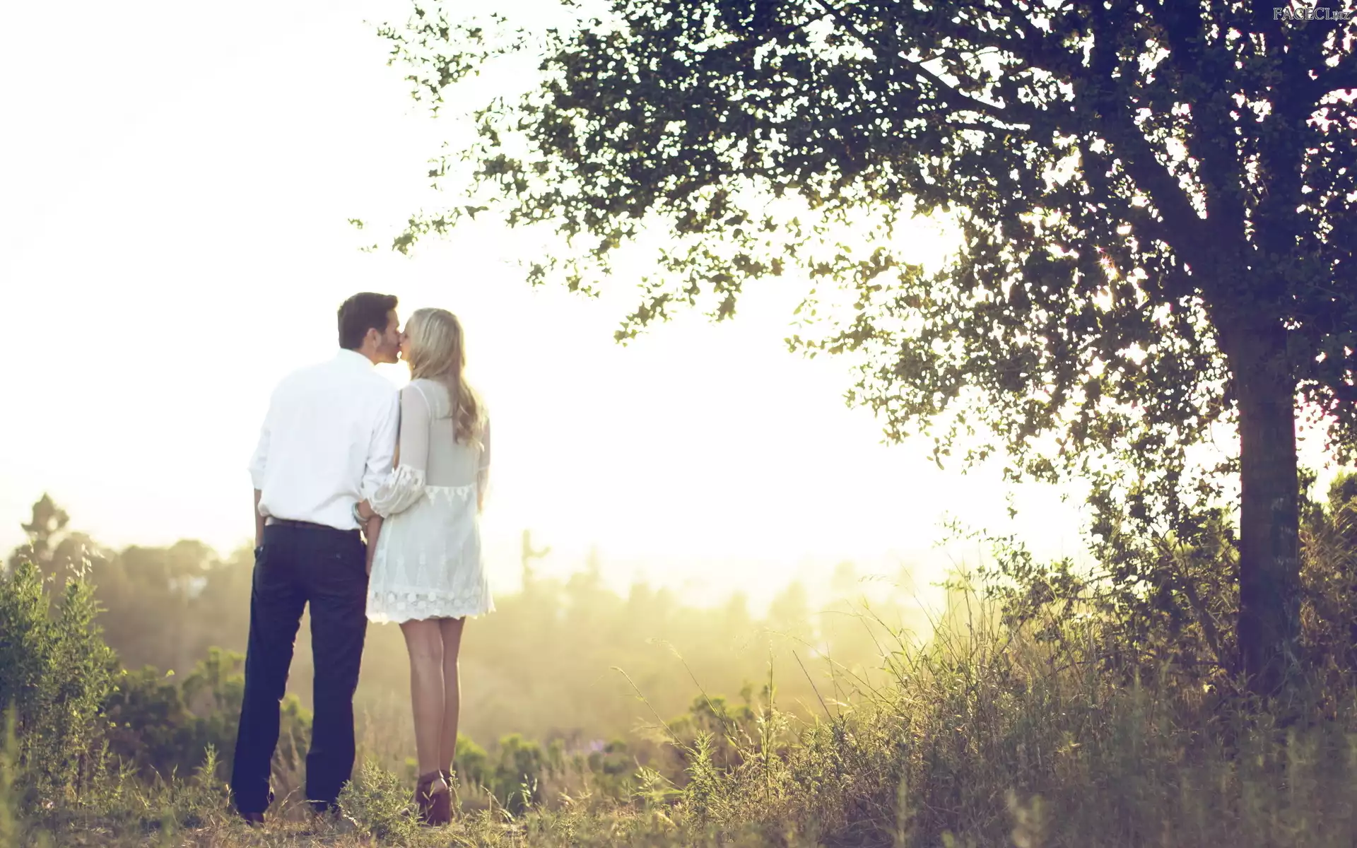 Mężczyzna, Drzewo, Kobieta, Łąka - faceci.biz